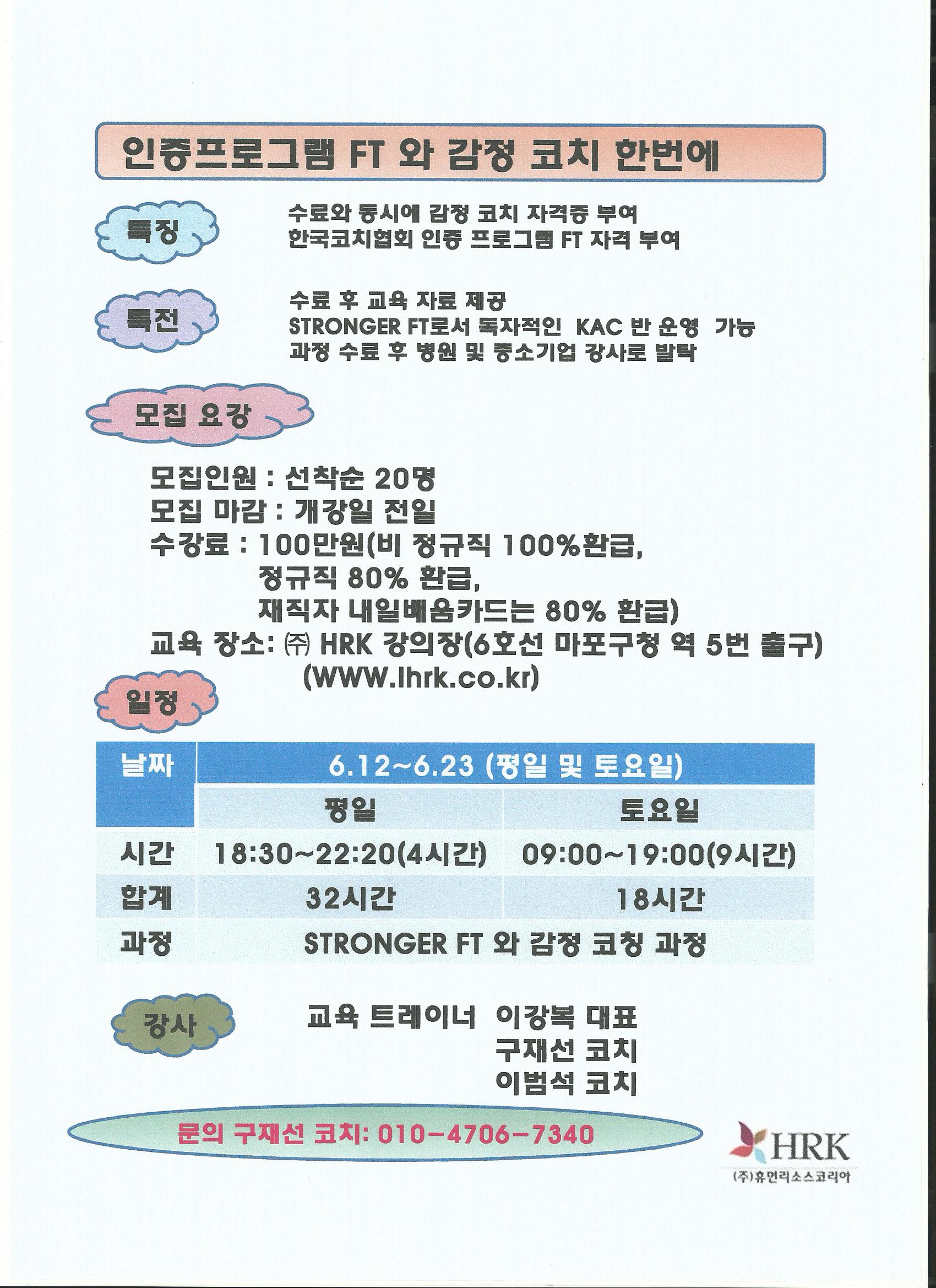 교육 특전 : 한국 코치협회 인증 프로그램(STRONGER) FT 자격증 수여
