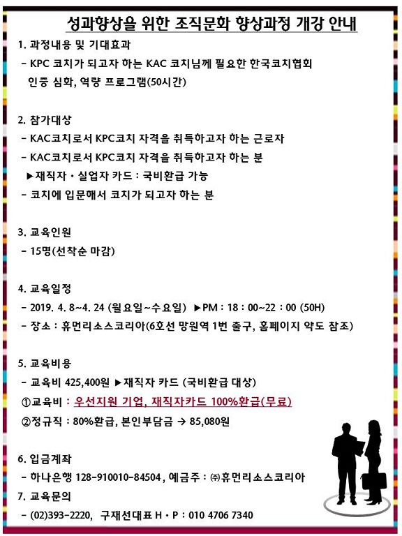 [공지]2019년4월 8일 개강 -성과향상을 위한 조직문화 향상과정 개강 안내- (KPC인증)